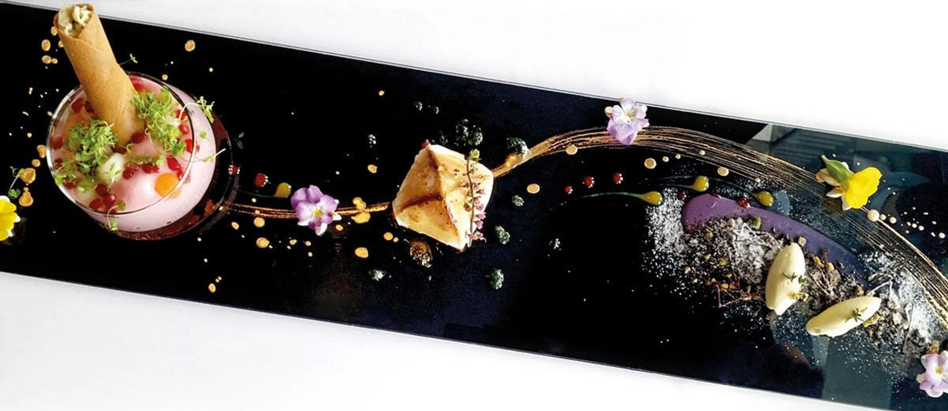 At 1-Altitude’s Stellar, for example, diners are treated to a performance in which pastry chef Jasmin Chew draws out their dessert on a long black slate using gold flourishes and edible flowers. While at it, she explains how each ingredient contributes to the dish – like how the bitter tang of fresh pansies balances the caramelised meringue.