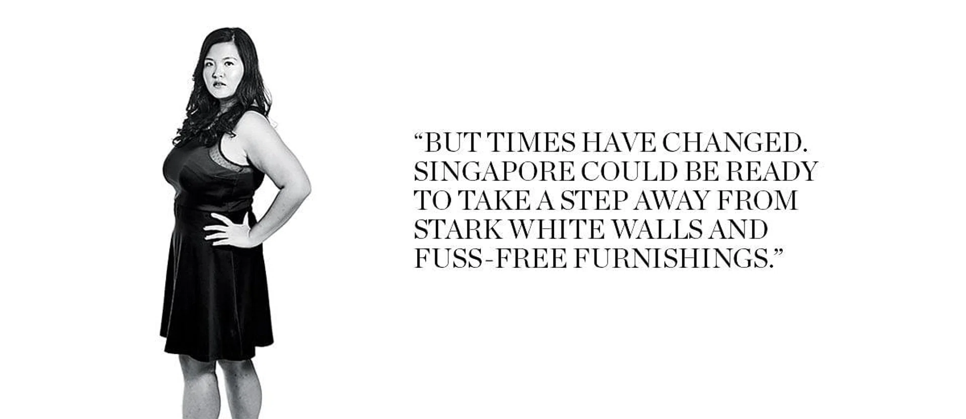 But times have changed. Teased hair and big shoulder pads are gone, and stripped-down designs like that of Apple products are everywhere. Singapore could be ready to take a step (no matter how small) away from stark white walls and fuss-free furnishings.