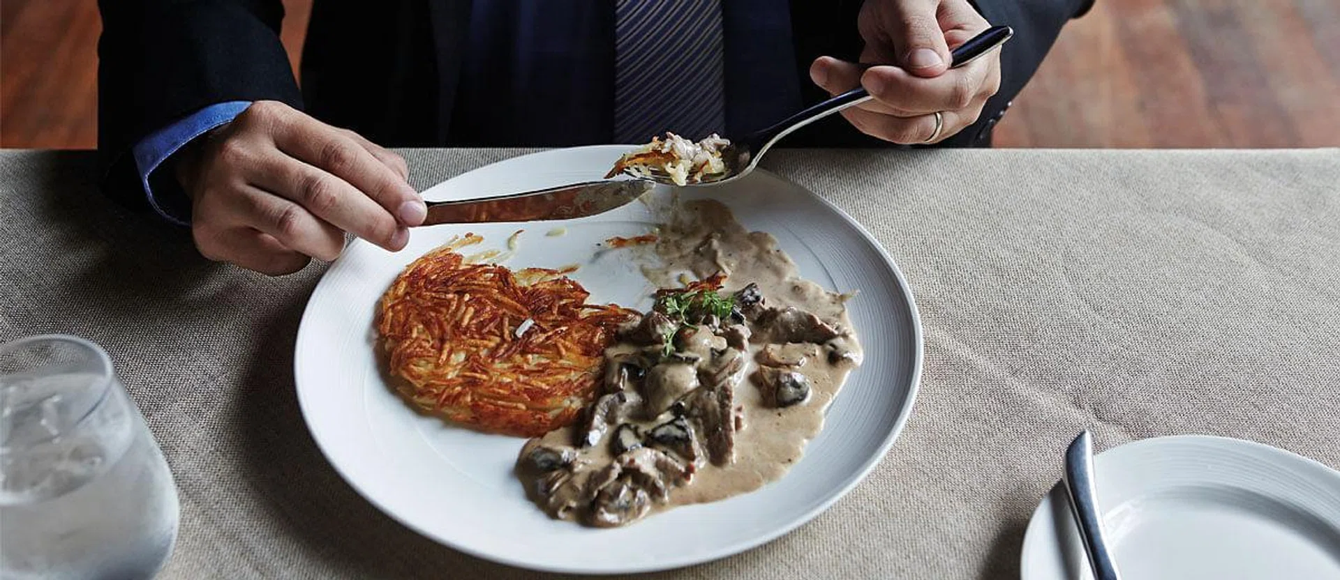 The Veal Zurich Style with Rosti “Zurcher Geschnetzeltes” is the signature dish of Chef Adrian Vogt. It reminds me of the time when I was studying in Zurich – after each successful semester, I would visit one of the traditional restaurants on the hills surrounding Zurich with my peers. And we would enjoy this dish with the view of the old town, the lake and the awe-inspiring mountains against the afterglow of the evening.