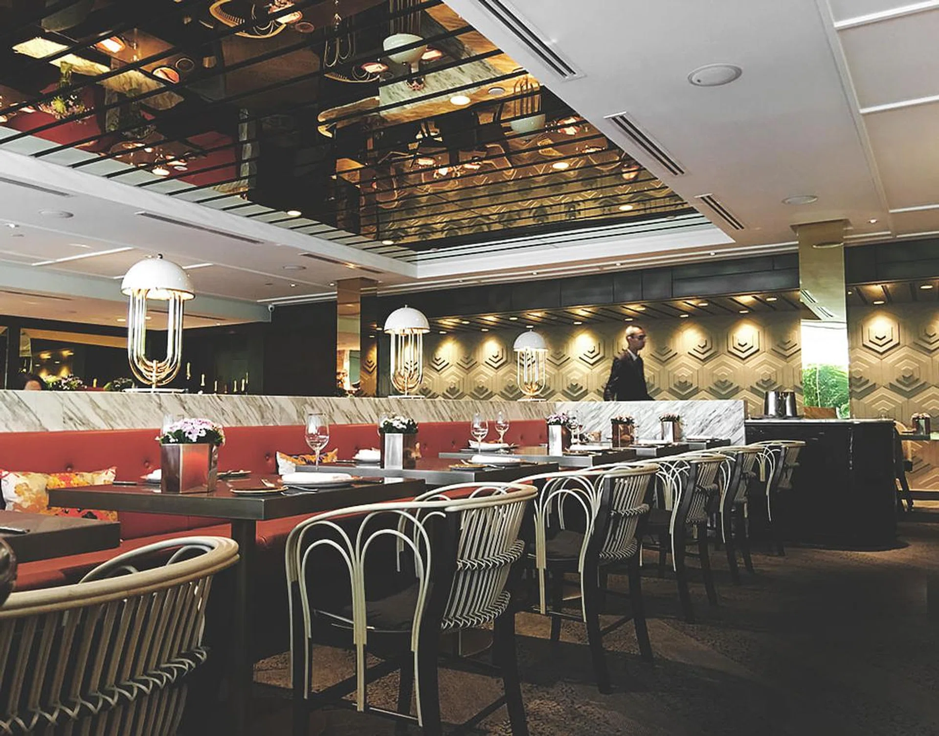 With rich interior details such as marble finishing, panelled walls, back-lit bar, mirrored ceiling and gilded lamps, Aura stands as a uniquely flashy option (and, thankfully, a tasteful one) amid a sea of minimalist-chic restaurants. Pair that with a menu of approachable Italian classics that have been suitably made luxe and you have a combination that pulls a healthy crowd almost every night.
