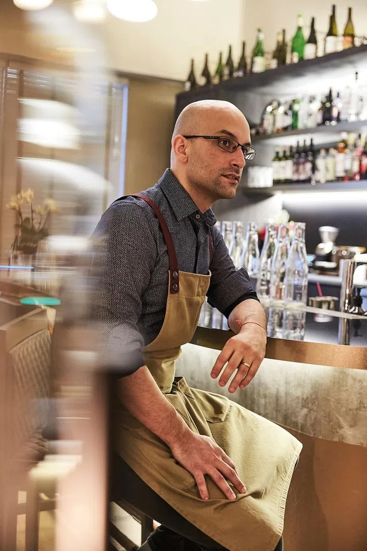 And in Singapore, where many such stories converge, Nouri feels very much at home. It features a long stone communal table where half is used by Brehm and his team to cook and plate desserts, while the other half is for diners. There are also tables along one side and a private room near the back kitchen. Brehm welcomes diners who want to move freely around and even peer over his shoulder – after all, he’s putting everything on show.