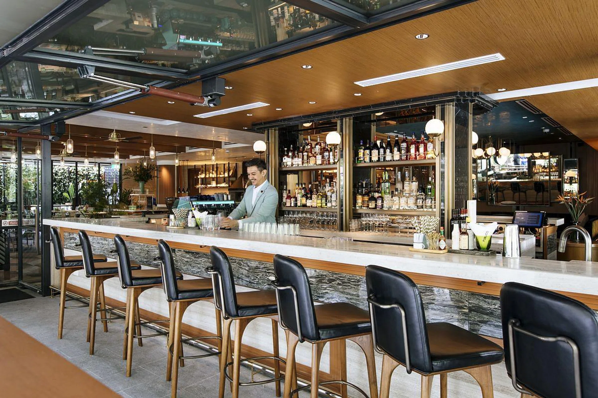 Considering the range and quality of Italian restaurants in Singapore, it seems almost foolhardy to enter this saturated stratosphere. But if diner numbers are anything to go by, new entrant Publico Ristorante has placed its bets right, not just with aperitivo hour on its lush riverside perch, but with a handsome main dining hall studded with millennial-pink marble tables and striking custom furniture pieces by New York design firm Avroko. Equally smart-looking servers in polished brogues and sharply tailored ankle-grazing trousers are the very sartorial image of Italian dandies.
