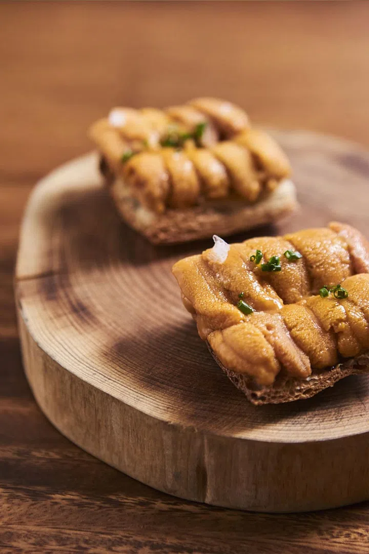 Bite into Terra’s bruschetta topped with Hokkaido uni.