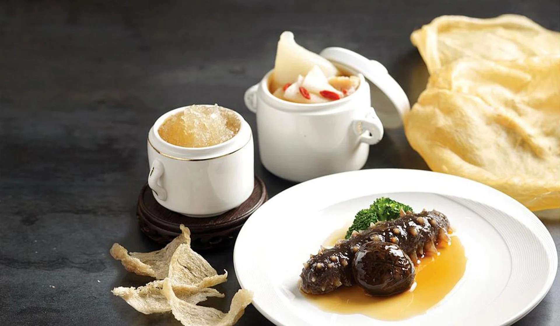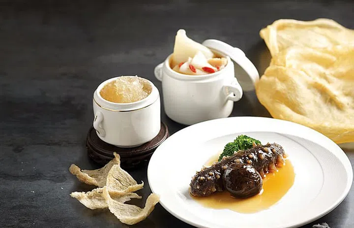 One of Teochew Paradise's Luxury Trio sets comprises fish maw and conpoy soup, braised sea cucumber and imperial bird's nest.