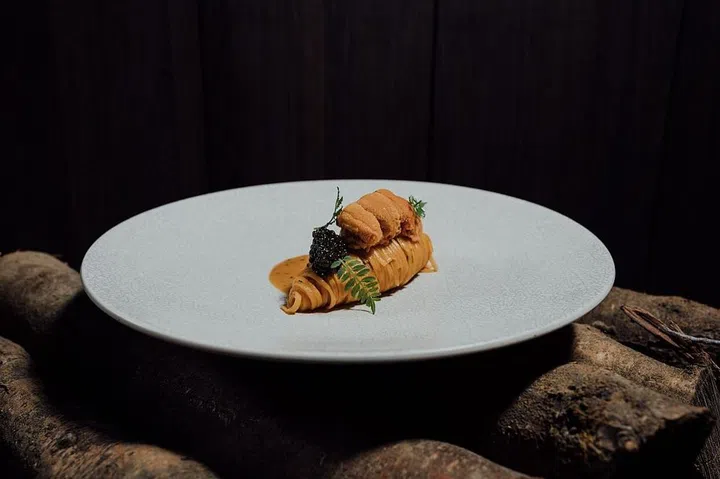 One-Michelin-starred Braci at 52 Boat Quay is known for its unique Italian creations. A mainstay here is the sublime 32-yolk tagliolini made with 32 egg yolks and 1 kg of semolina flour. The slurp-worthy tangles of pasta is partnered with two types of sea urchin from Hokkaido: naturally sweet bafun uni (available in winter) is preserved and turned into a rich paste and added to the sauce, well as fresh and creamy murasaki sea urchin. The perfectly coiled tagliolini is then crowned with delicate Ossetra caviar alongside a sprig of kinome or shiso flower which lends a subtle spiced aroma.