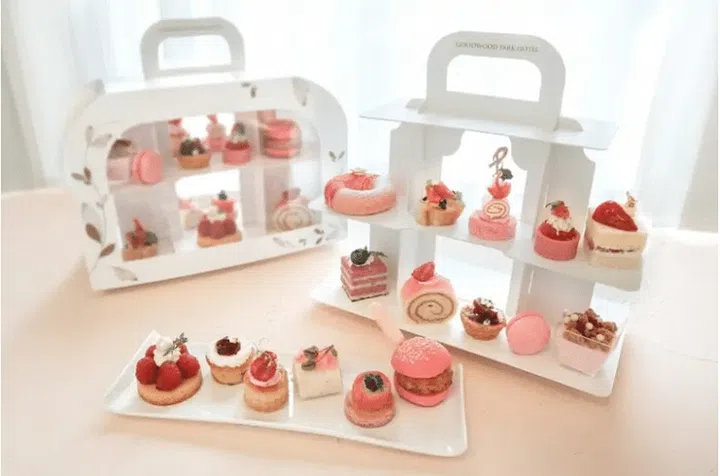Another nod to the pink ribbon, the Rosy Medley Set at Goodwood Park Hotel comes with two tiers of eight pieces of both sweet and savoury nosh. Expect the likes of Hot Smoked Salmon Rillette on Pink Pancake for savouries and Raspberry Sablé Breton for sweets. Or if you can’t make up your mind, get a combination of both with a total of 16 pieces. A portion of the proceeds will go to Breast Cancer Foundation as well, and an advance order of three days is required so make your reservations early.