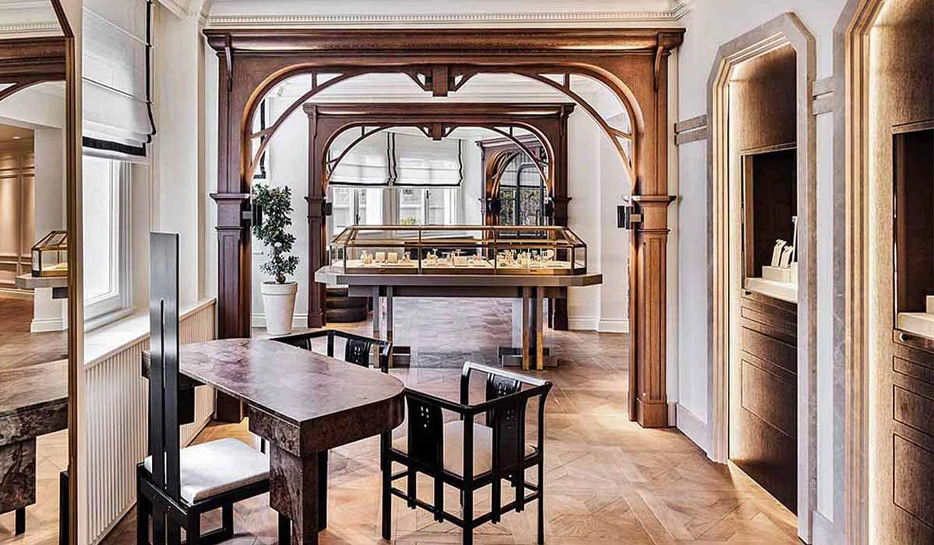 “It was important for us to echo the brand’s elegance, contemporary aesthetic and art deco influences,” says Enis Karavil, co-founder and creative director of Sanayi313 Architects. “We wanted to create a design scheme that would give visitors a memorable experience without overriding the pieces showcased.”