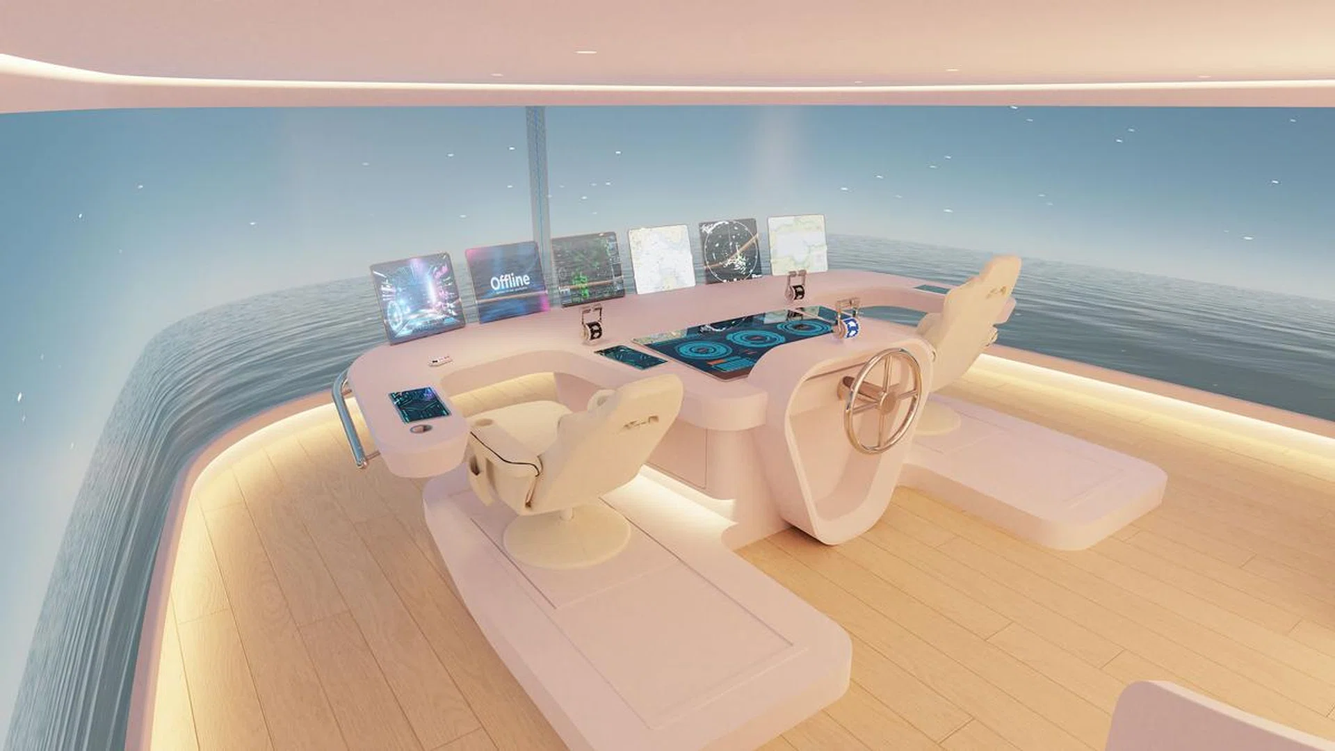 His latest concept is a little more subtle, though no less outlandish. The B0nd Girl is an homage to none other than the famous British spy himself, who recently carried out his final onscreen mission (at least being played by Daniel Craig). It’s svelte, sharp and stealthy by design, with a distinctly-angular profile flanked by two outrigger hulls (that house crew and extra machinery). Guests retire to the main hull within, which is decked out with all the glitz and glam you’d expect from a Bond-esque construction, sans missile launchers.