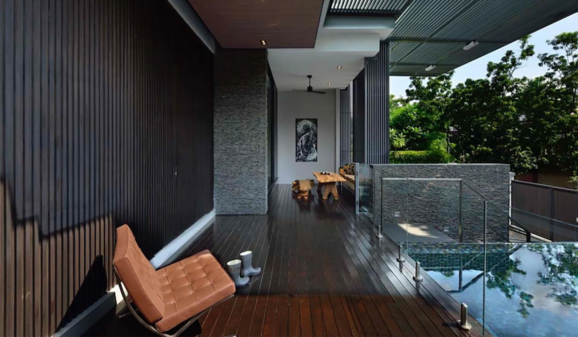 Interior design firm Metaphor Studio maximised the home’s exposure to matured greeneries to create a relaxed ambience.