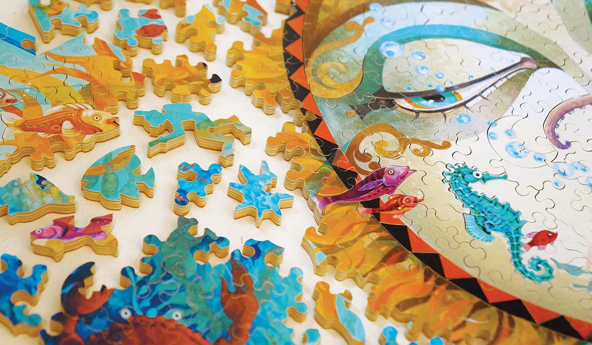 Throughout its stable of works, Stave mischievously weaves in challenges such as the absence of straight-edged pieces or embedding them into the body of a puzzle to mislead a fan. It also creates pieces that are similar in shape and colour to confuse, and even makes puzzles that fit snugly at the borders – but with voids in the interior to befuddle.