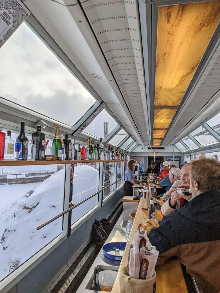 Amid the convivial chatter and cheerful pop music, I take in the magical views of frozen lakes and snow-lined valleys from the cabin and rooftop windows as the train meander through the snowy tracks. The Apres-Ski Train, which is the only one in Switzerland, will end its run permanently on 17 April.