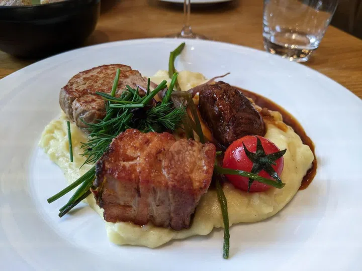 Other restaurants on my gourmet trail in Andermatt include Restaurant Biselli, which serves creative Swiss-Italian dishes. Dishes include palm-sized ravioli filled with meat and springy lobster tagliolini with brisket sauce. Restaurant Spun in the Radisson Blu Andermatt offers a variety of local produce in its dishes such as a trio of pork belly, cheeks and fillet from herb-fed pigs from Eastern Switzerland, and chicken from Alpstein.