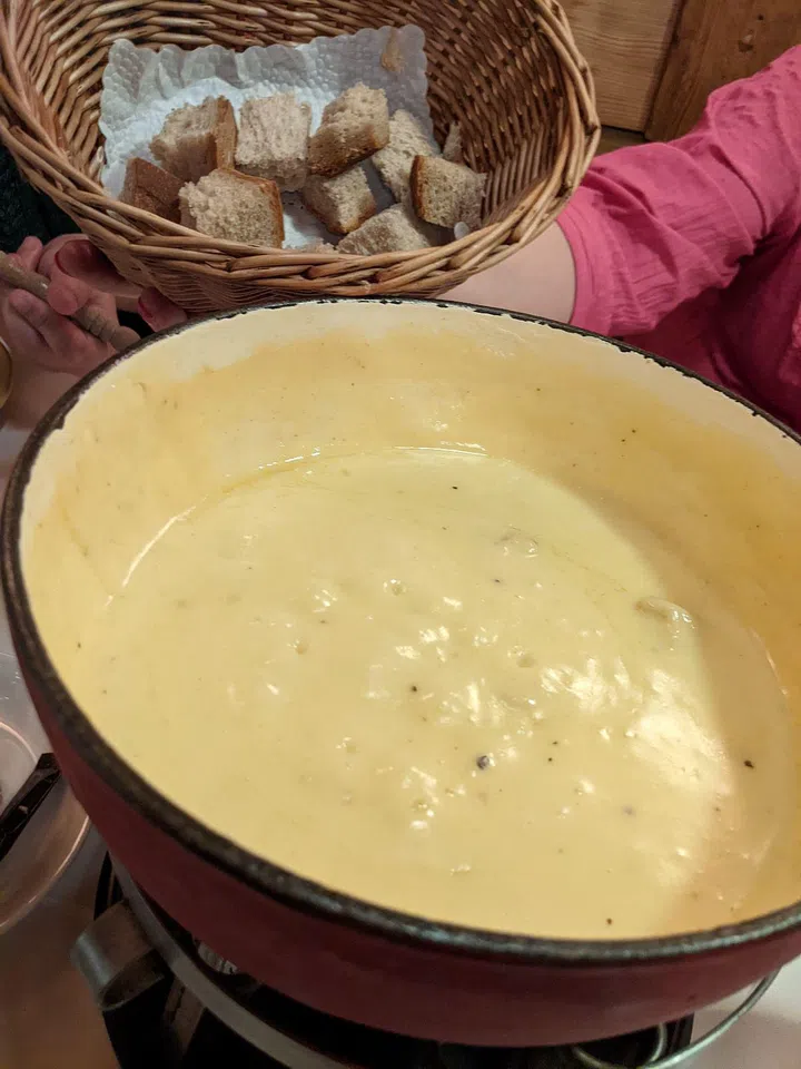Cheese is also the highlight at Restaurant Sonne, a rustic hotel-restaurant in Andermatt’s old town, which serves the winter dish of cheese fondue. My dining companions and I huddle around the pot of velvety melted Alpine cheese and dip the bread cubes into the molten creamy mixture. A sprinkle of black pepper gives the cheese-coated bread a surprisingly meaty flavour. As a finale, a waiter scraps the bottom of the almost-empty pot with a spatula. The golden-brown crust, which is affectionately called “the grandmother”, is warm, gooey and reminiscent of cheese toasties.