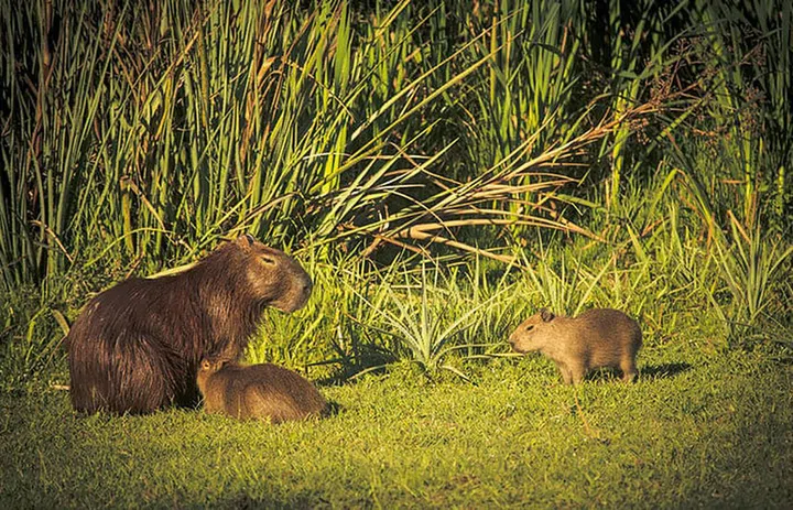 Yet, take a quiet drive around the land and you’d be transported right back to the days when South America was untamed and free. Carpinchos, or capybara, the world’s largest rodents and a highlight of any Pantanal expedition, can be seen resting in groups by waterways, as well as nandu, or rheas, that roam the land freely.