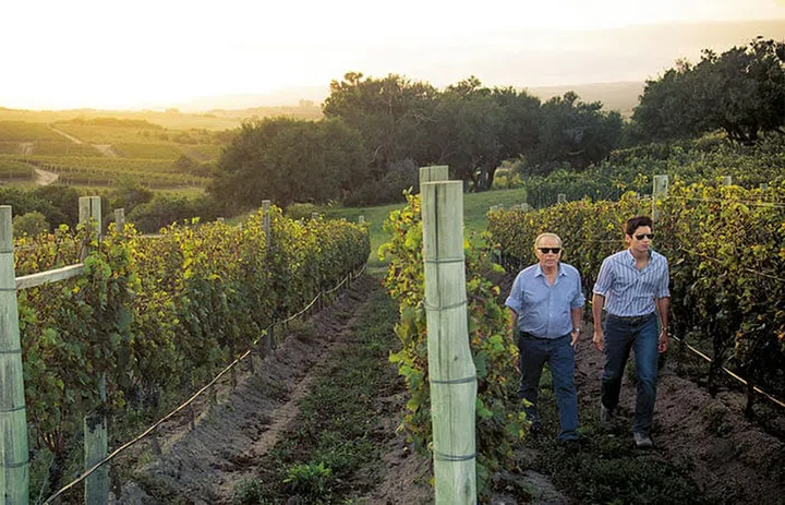 VINEYARD INSPECTION Bulgheroni (left) also has oenological interests in Tuscany, Bordeaux and Napa Valley.