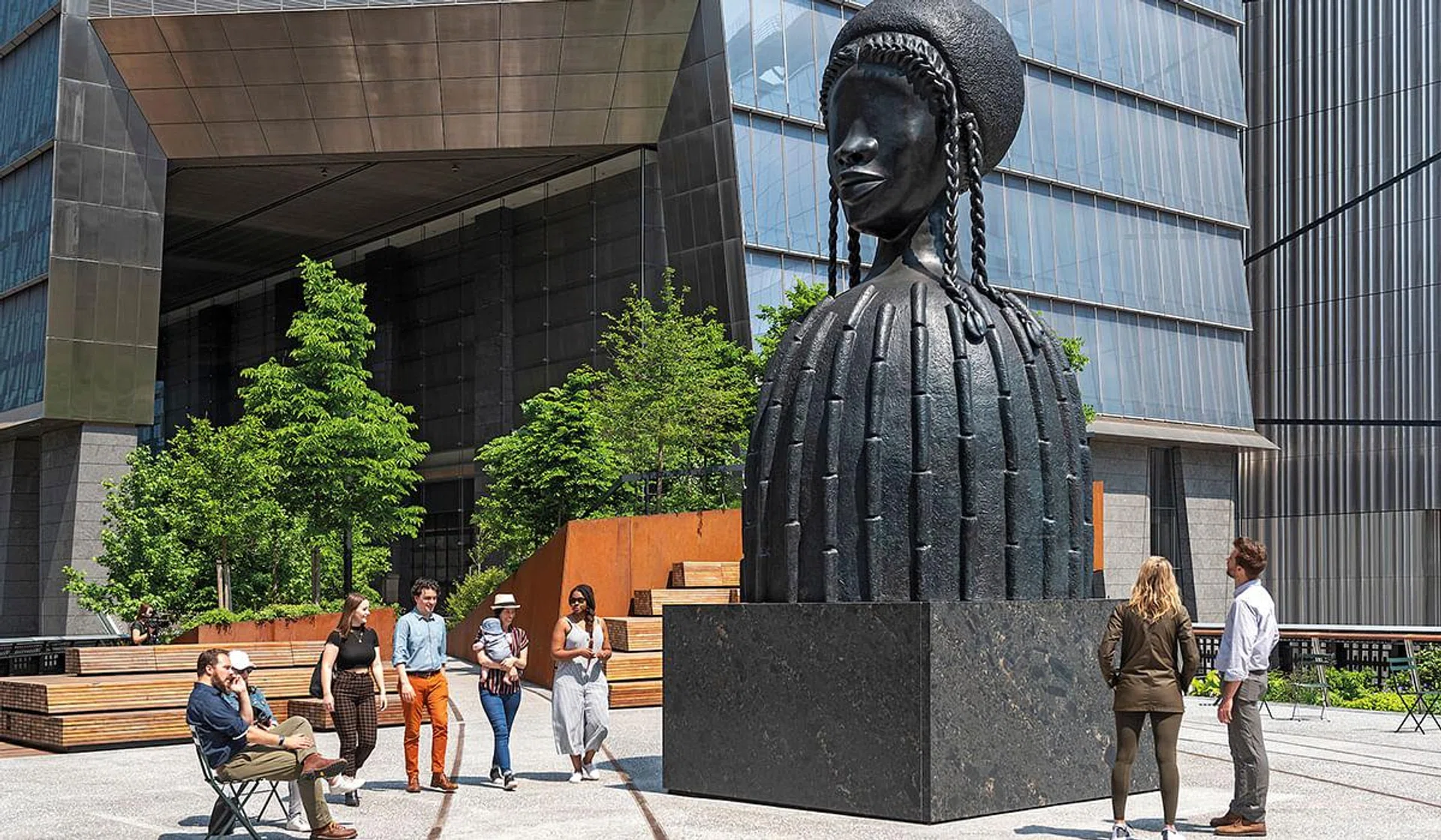 The final choice for the inaugural High Line Plinth – after a lengthy process involving 50 proposals from artists from 26 countries – is Brick House by Simone Leigh. The towering bronze sculpture of a black woman with a domed, skirt-like torso was inspired by the domed dwellings of Chad and Cameroon in Africa, Batammaliba architecture from Benin and Togo, and Mammy’s Cupboard, a Mississippi restaurant.