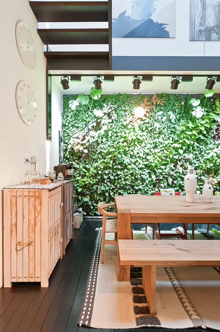 The airwell above the dining area also allows natural light to fill the space during the day, bringing a sense of liveliness and warmth to the ground floor area.