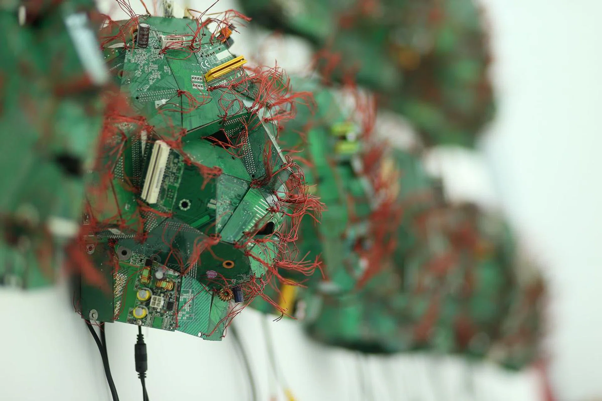 South Korean artists were in the spotlight, such as Kyungah Ham and her Mona Lisa and the Others from the North installation juxtaposing portraits of Mona Lisa embroidered by North Korean artisans with interviews of North Korean refugees who have settled in South Korea; Son Il with his Hoonmin series mixing Korean alphabet characters and mulberry tree fibres; and Shim Moon Pil’s vibrant paintings under Plexiglas and Kim Hyun Sik’s abstract works in epoxy resin and acrylic that invite viewers to meditate on multiple layered lines of colour. Also showcased was Chinese artist Gao Weigang’s outline of a door in stainless steel, gold and iron, which encourages viewers to question their views of the world.