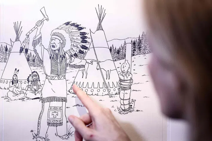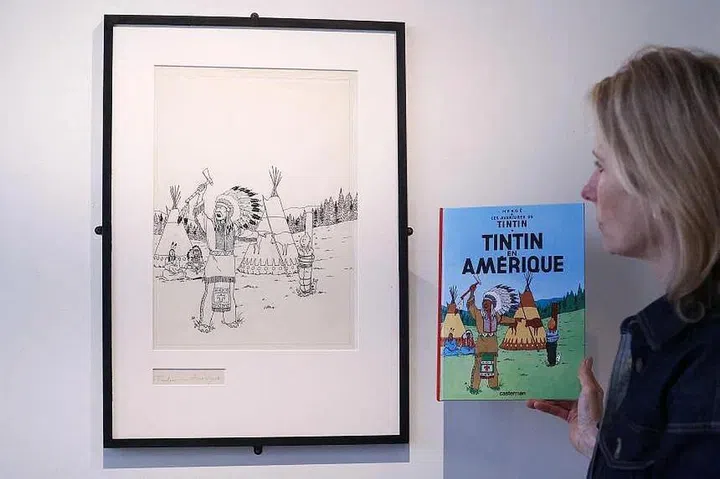 The 1942 black-and-white ink drawing by creator Herge for the cover of the third volume in the series “Tintin in America” is set to go on sale in Paris next month.