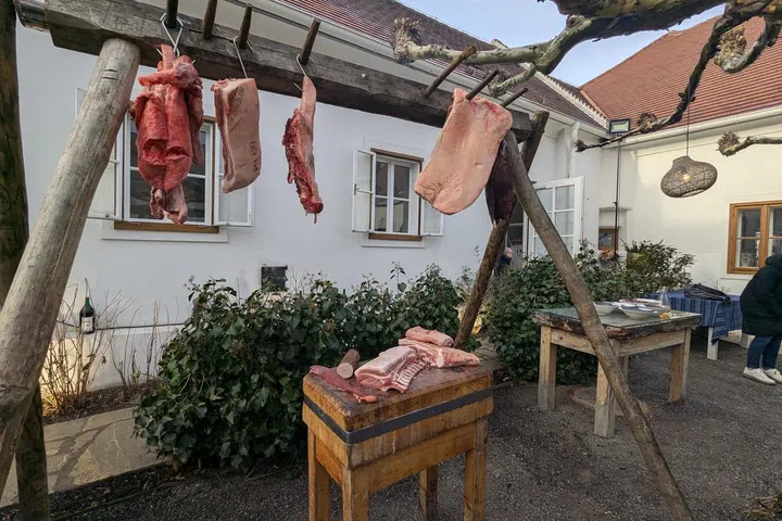 I am part of a party of about 20 people who have braved the winter cold in January to huddle in the backyard of nose-to-tail restaurant-inn Gut Purbach in Burgenland in eastern Austria. High-spirited banter is swiftly dialled down whenever Stiegl heaves vats of food over the fire.
