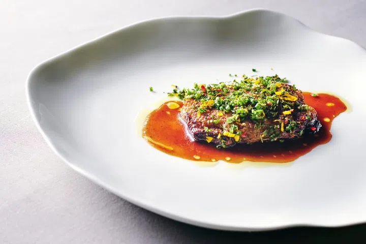 Another example is the veal kidney with Oxymel sauce, inspired by a traditional recipe by German abbess, Hildegard von Bingen. The elevated take on the classic dish has lime, pepper and fresh herbs that accentuates the rich flavours of the veal kidney, drenched in the sauce, which is a blend of honey and vinegar.