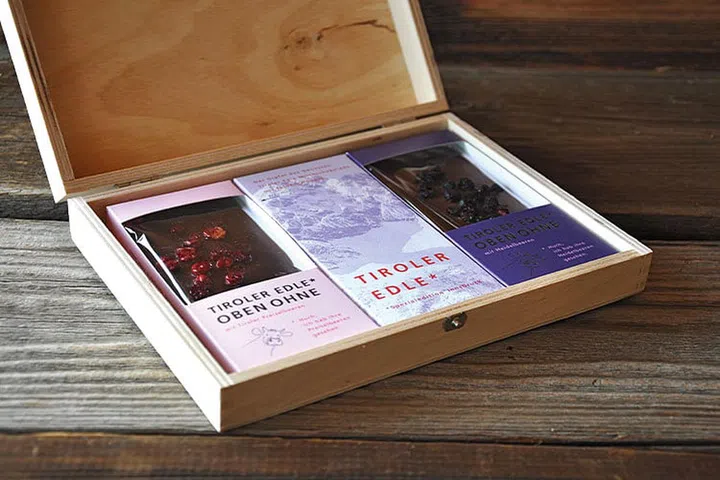 Reindl also recommends Tiroler Edle (Seilergasse 13) artisanal chocolate by master chocolatier Hans-Jorg Haag as a unique edible gift. The special milk used for the chocolate comes from Tyrolean Greys, a breed of cattle that has grazed the mountains of Tyrol for more than 3,000 years. Today, they are bred only by a select group of devoted mountain farmers. The berries, fruits, nuts, and brandies used in the chocolate come from local producers. The cacao is carefully selected based on a thorough assessment of the source of origin, sustainable agriculture, human working conditions, and adequate pay for the cacao farmers.