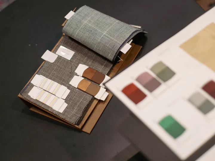 He personally guided customers through the choices, explaining the origins and properties of each material and recommending the best for the wearer’s lifestyle. For our tropical climate, he suggested lightweight wools with open weaves. He also recommended slightly heavier fabrics, like cashmere blends, for those who work in air-conditioned offices for extended periods.