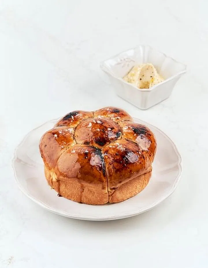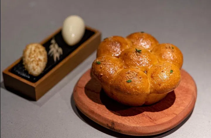 Fermented overnight, the soft milk bun holds pockets of a nori blend comprising three kinds of seaweed — shio kombu, roasted nori and fresh ao nori. Their take on dashi reimagined as a bread, the seaweed’s natural umami is accentuated by the sabayon (an Italian egg-based sauce also called zabaglione) it comes with. Consisting of katsuoboshi or bonito, also a crucial component of dashi, the sabayon is made with clarified butter, egg yolks, shallot vinegar reduction and yuzu as well and brings a little acidity to the table.