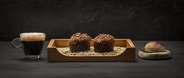 Riffing off current reiterations of soda bread that’s made with Guinness, treacle, walnuts and herbs, Walsh’s recipe reduces the amount of stout to give the bread a richer taste accentuated by the sweetness of treacle. On its own, the bread has notes of caramel and is served with in-house bacon butter and a mini Guinness.