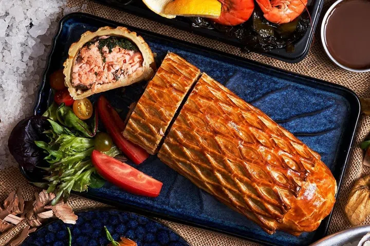 For hosts looking for a more unique spin on the classic fish dish, the store also offers a Salmon Wellington dish. Inspired by the classic beef wellington, this dish features a kilogram of fresh salmon fillet, layered with mushroom paste, spinach, and homemade crepes, inside a rich butter pastry. It is designed to serve six to eight, and is sure to impress guests at any dinner.