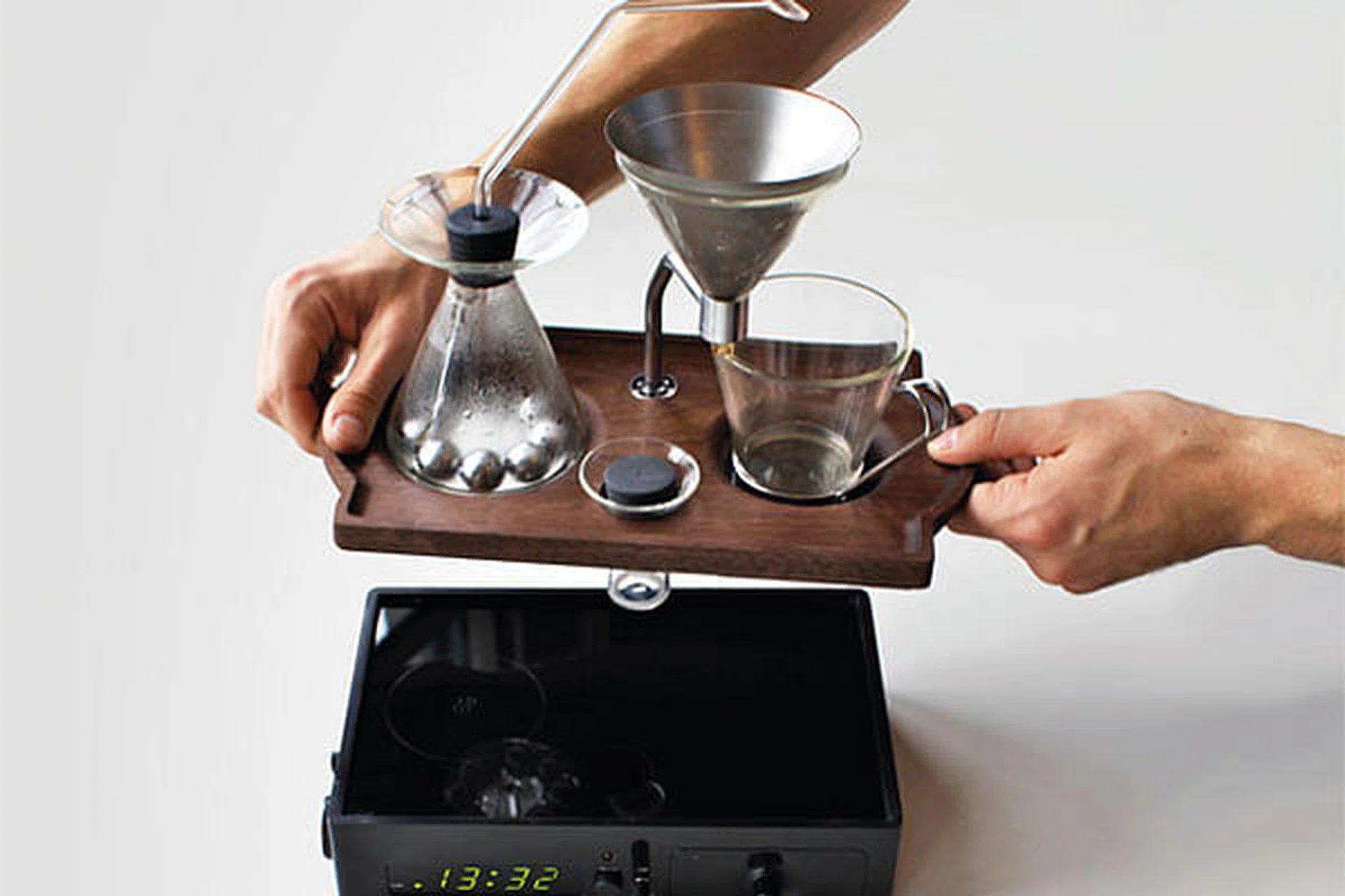 Most people can’t start their days without a cup of coffee, usually made blearily through a haze of moody drowsiness. British designer Joshua Renouf clearly belongs to this group, because his latest invention will soon make alarm clocks and apps an aggravating thing of the past. Behold the Barisieur: a coffee-making alarm clock that will coax you back to the world of the waking with welcoming aromas and a freshly brewed cup within arm’s reach.