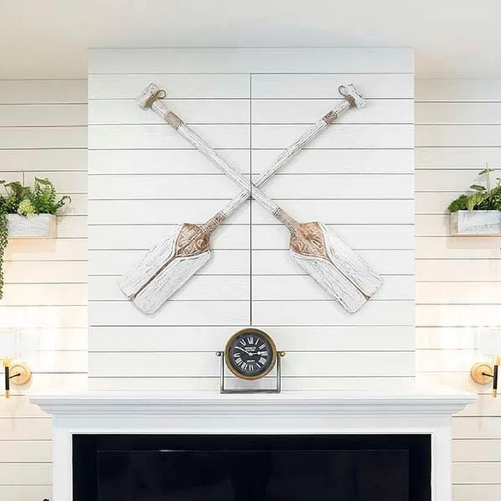 “Instead of using individual planks, we created a similar effect using wood-grained textured laminate over a timber panel that was clad over the existing wall,” Carmen explains. U-profile groove lines mimic the tongue-and-groove joints found in actual shiplap panels.