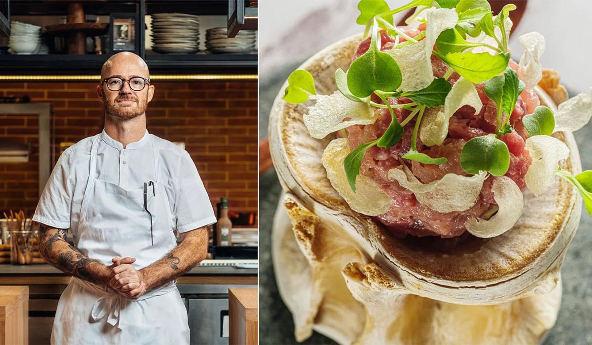 "The concept is shaped by my early life experiences growing up in Africa and France and celebrating the seasons through produce; working in Spain, and living in places with pristine natural environments," he says. His eco-friendly approach means using line-caught, responsibly sourced, traditionally farmed and bio-dynamic ingredients, and "showcasing 'real cooking' with woodfire in the traditional way".