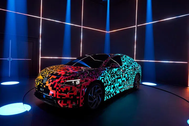 Not to be outshone, fellow German automaker Volkswagen’s ID.7 also comes with a form of “special camouflage”, created via 40 layers of paint (some of which react and light up when an electric current is passed through them). Like BMW’s car, the ID.7 comes with 22 separate panels that can be customised independently – or hooked up to a sound system for what might be the world’s biggest flex of a disco ball.