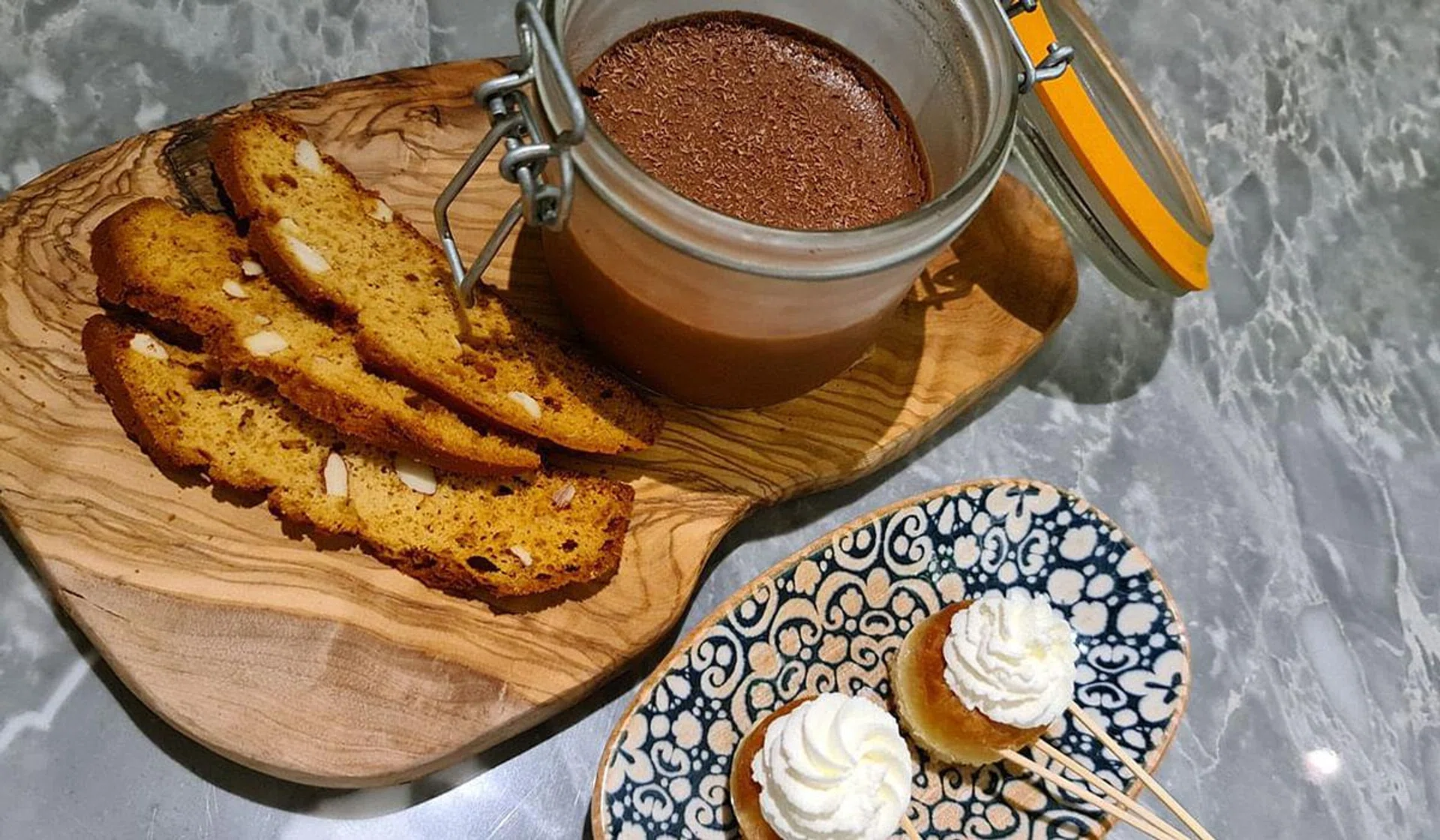 Finally, chocolate mousse (S$14) made to his mother's recipe shows where he inherited his calorie-pinching ways from. Made without cream, it gets its aerated creaminess from eggs, milk and chocolate. Tasting like a whipped Aero chocolate bar, it's served with tender nutty biscotti and two bite-sized rum babas that are innocent little cakes soaked in a grownup amount of booze.