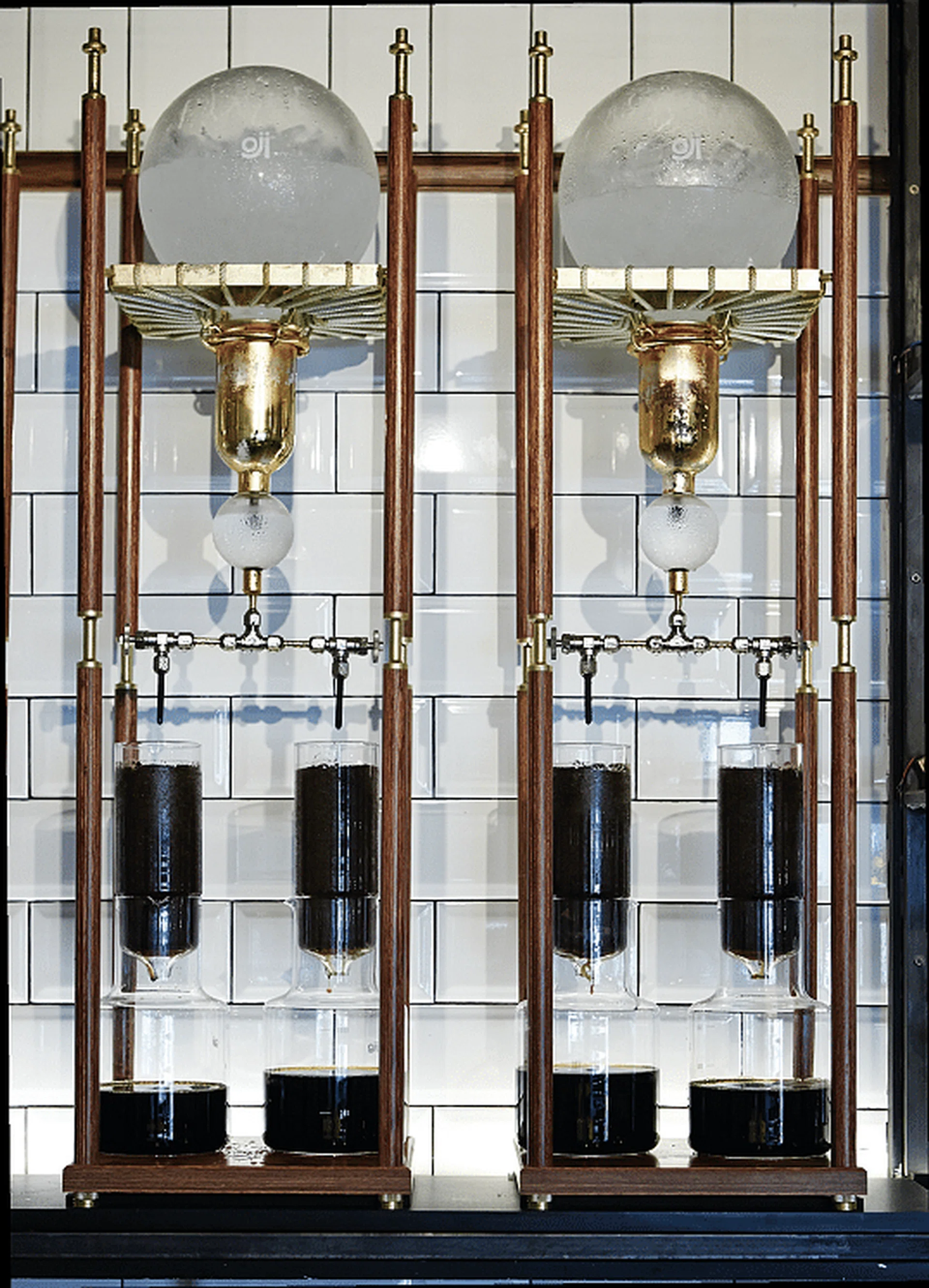 It takes over 18 hours to produce just 1.5 litres of coffee per tower (two pictured above) – that’s seven glasses of brew.