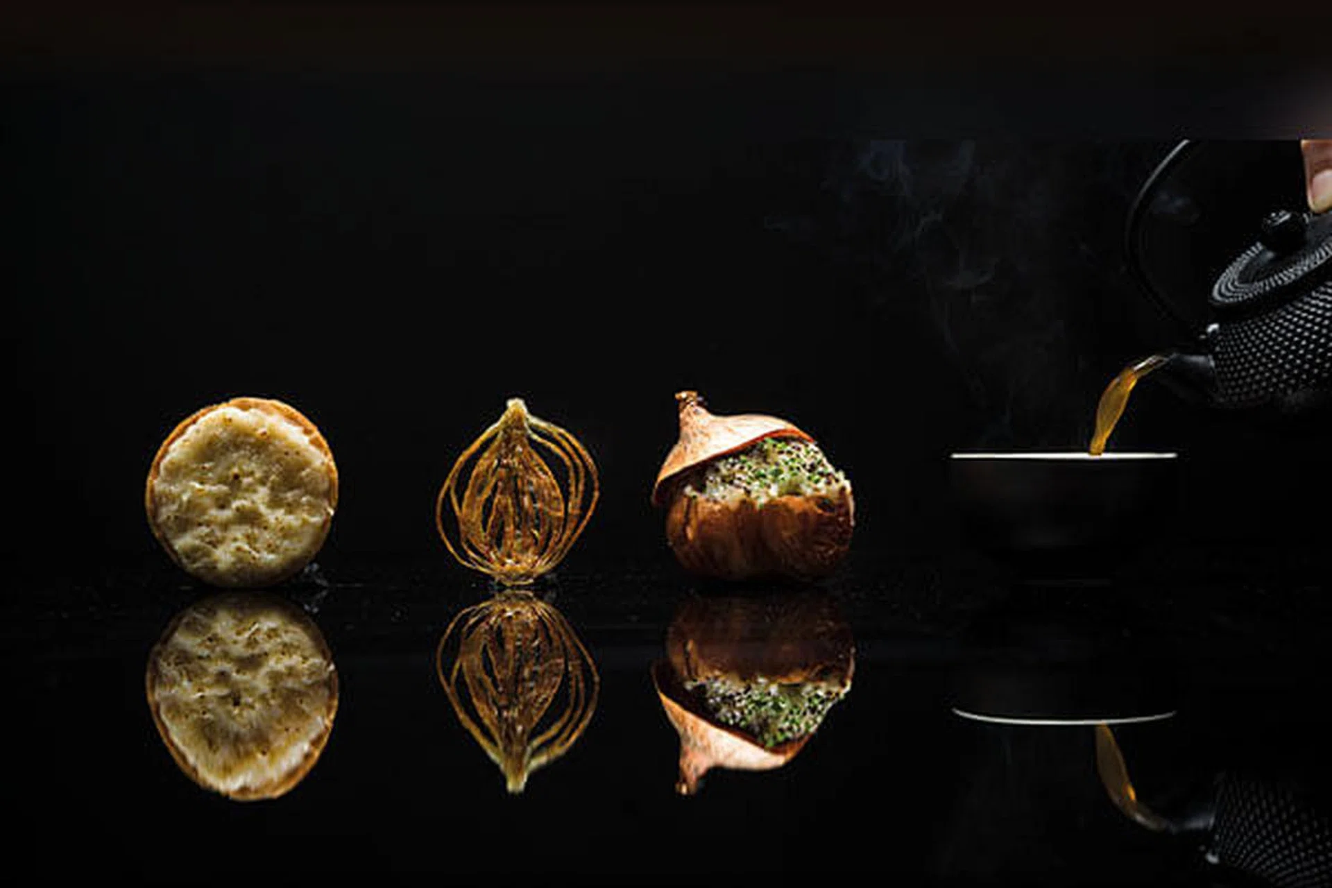 Tan, 32, has honed his skills at luminaries like Les Amis, Le Saint Julien Restaurant and Macau’s Robuchon au Dome. But it is here that he gets to interpret produce in unexpected ways, like his favourite vegetable, the sweet Cevennes onion from south-central France, which is done four ways. A lightly fried dehydrated slice gives crunch, while a luscious onion confit is presented in three different styles: in a roasted hollowed onion shell with sous vide egg and black truffles, on a round filo pastry tart, and as a broth infused with earl grey tea.