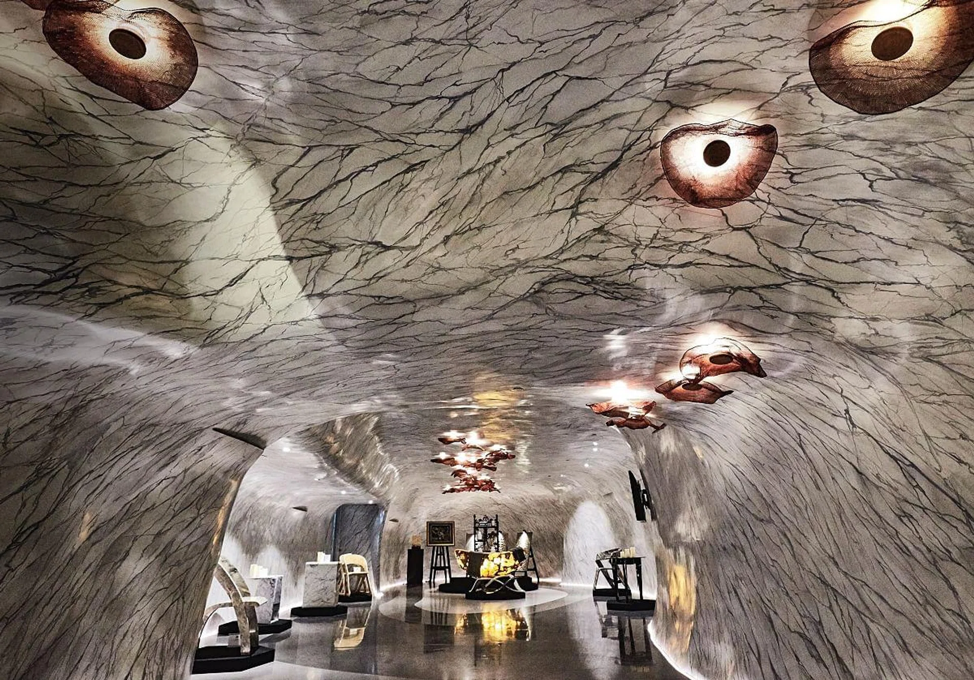 What's the secret to curved cave walls and intricate floating tables that are unmistakably marble to the touch?