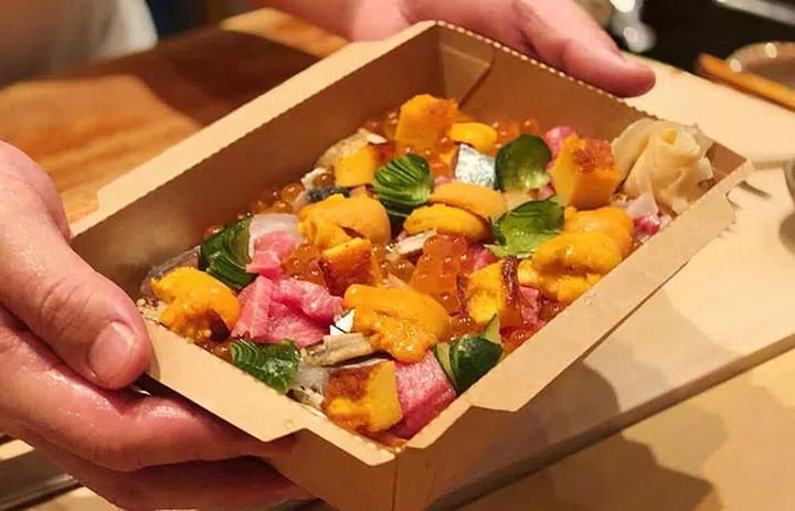 Ki-sho's Luxurious Chirashi Don is packed in a smallish cardboard tray that's brimming with more premium quality seafood than actual rice.