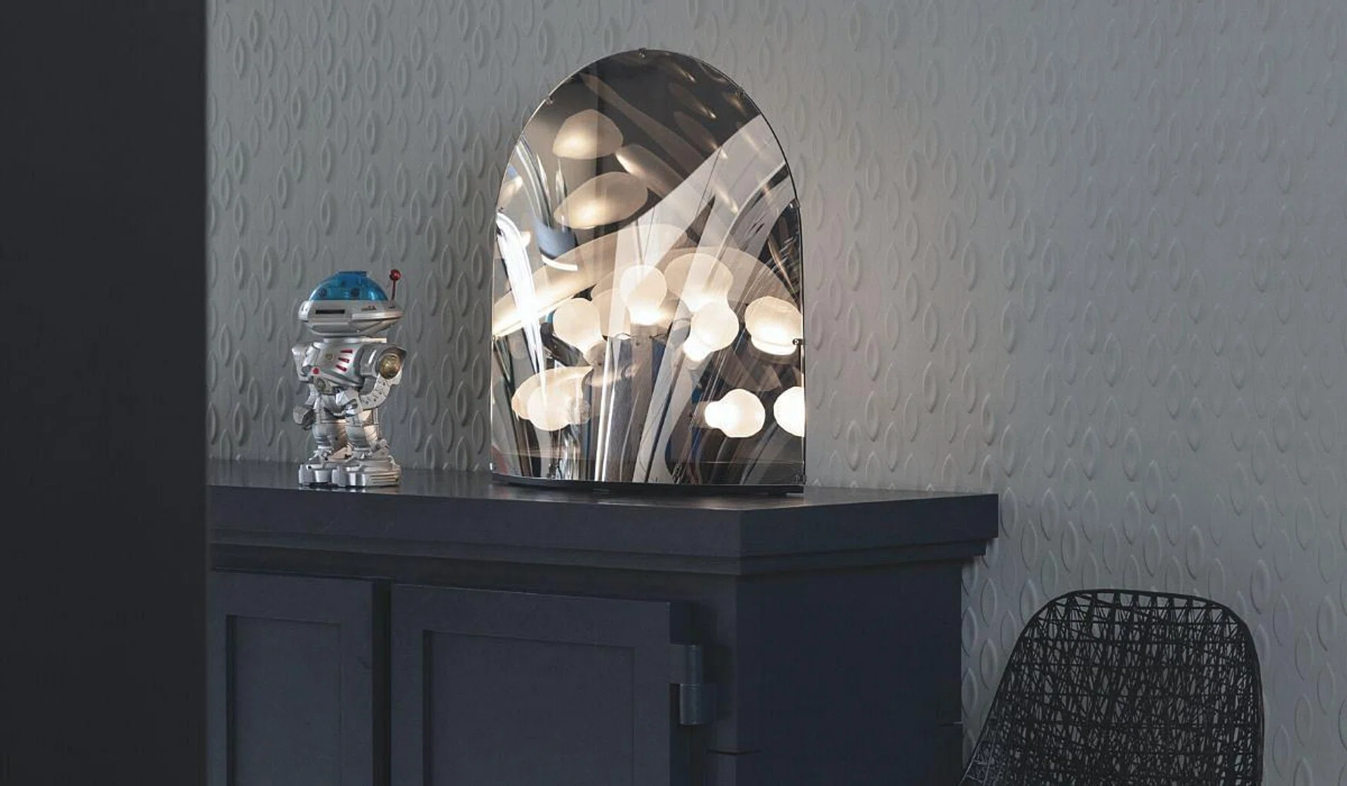 Moooi’s release for 2020 – destined for the Salone del Mobile furniture fair that was cancelled this year – is the Space Table Lamp, which offers an unusual spin on a regular lighting appliance. It has a slender mirrored surface and sits unobtrusively in the home. However, once switched on, it reveals a depth filled with different lighting hues. Material and technique work together in an unconventional way to create this element of surprise, which is characteristic of designer Ward Wijnant’s works.