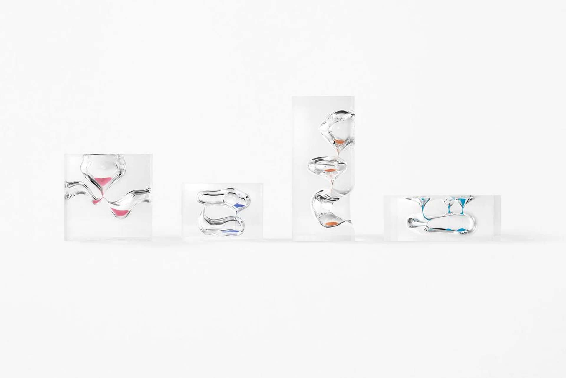 Design studio Nendo reinvents the hourglass with striking acrylic creations