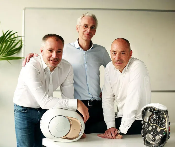 The Devialet triumvirate – Sannie, Calmel and Nardin – behind the French brand's runaway success. One man each for marketing, technology and design (respectively).