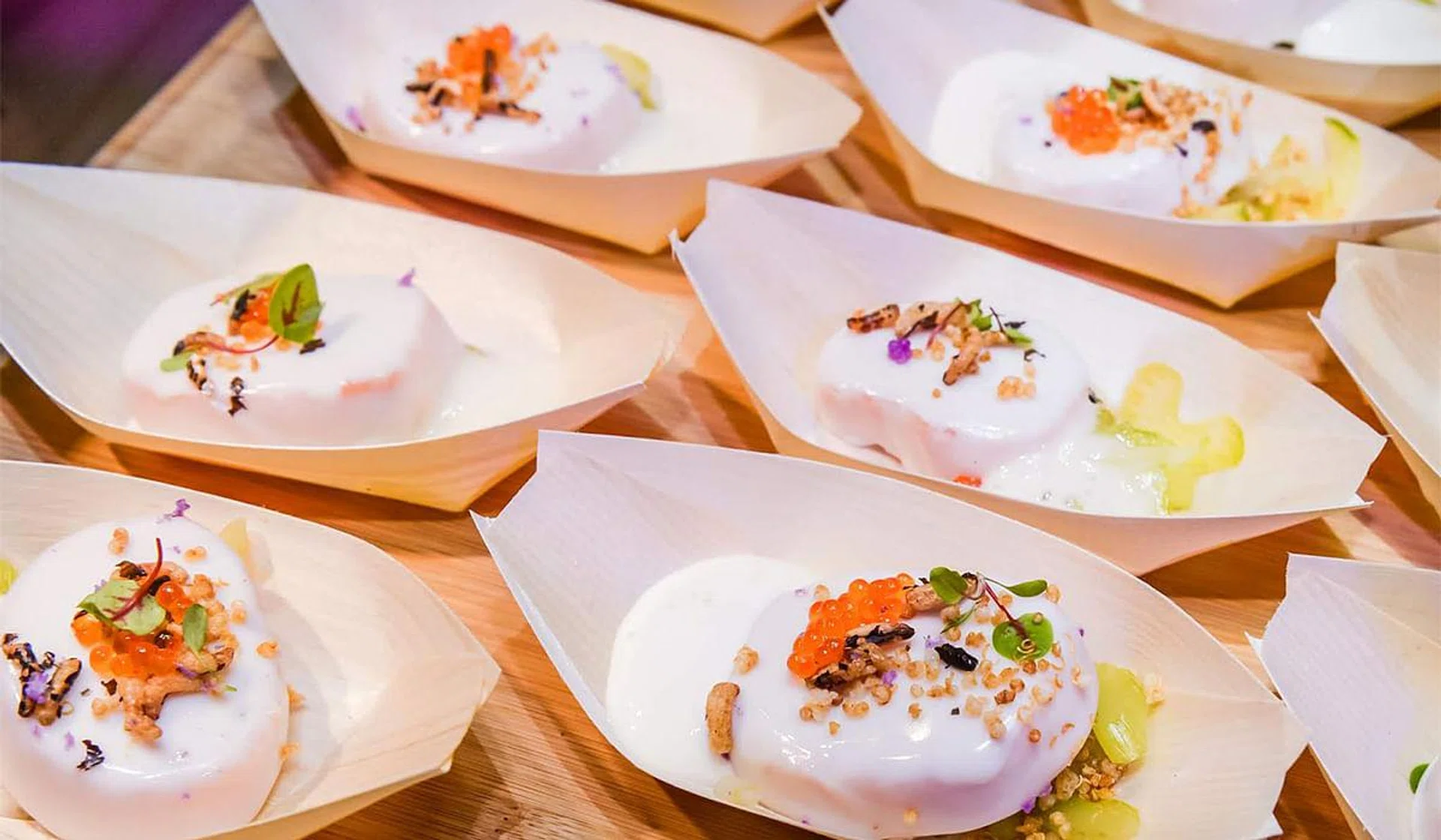 Catering companies are swapping out single-use plastics for alternatives like lacquered bento boxes and opeh leaves.