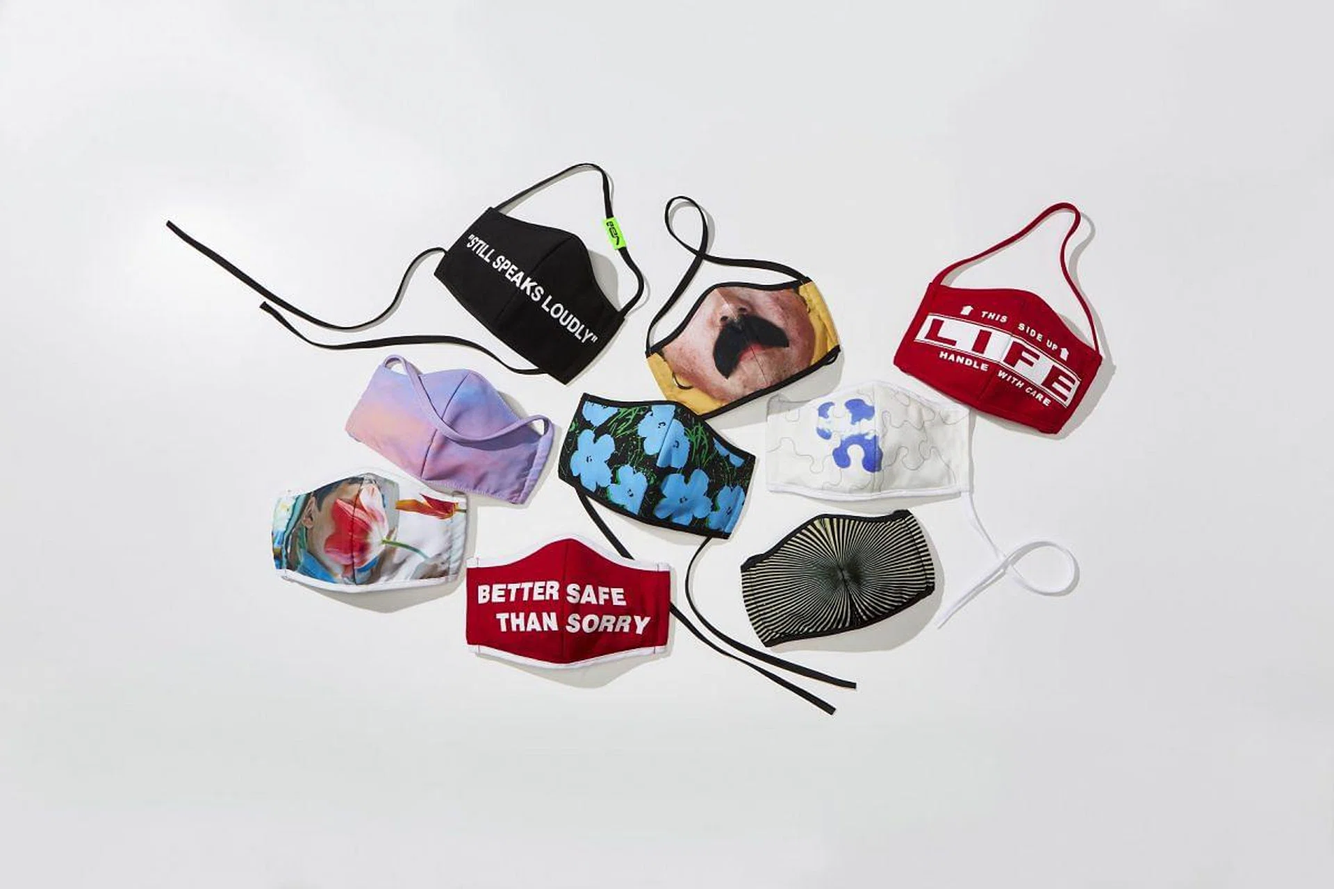 Face masks have become an unlikely canvas, a new piece of fashion real estate, on which to wear designs that express your identity, to match your outfit or to make a statement. To cement its status as a fashion accessory, and encourage contemporary expression, nine artists have jumped on the bandwagon with a series of limited-production masks.