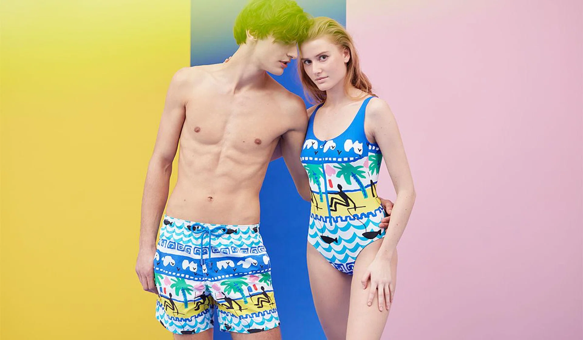 Known for his bold splashes of primary colours and some truly odd designs such as a coat made of Kermit the Frog plush toys, French designer and artist Jean-Charles de Castelbajac has had many collaborators over the years. This wide-ranging list of partners includes Pope John Paul II, Lady Gaga and Hello Kitty. Now, he has merged his colourful aesthetic with the creations of French luxury swimwear brand Vilebrequin. The result is a playfully vibrant collection for men and women, including swimwear, resort wear, and accessories such as a rainbow-striped sun hat and headbands made from terry fabric.