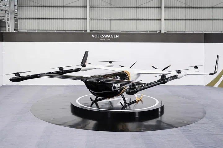 The German car brand’s Chinese division, Volkswagen Group China, recently unveiled news about its electric VTOL passenger drone prototype dubbed the V.MO (but unofficially called the flashier Flying Tiger for its black and gold colours). With ten rotors in all — eight providing vertical lift and two for horizonal flight — it’s estimated that a production version could carry four passengers, luggage in tow, for up to 200km.
