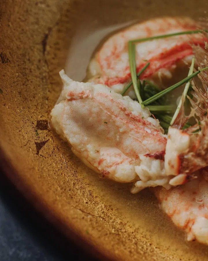 With an emphasis on seafood, Chef Kazuhiro serves delectable dishes including the restaurant’s signature uni and lobster-laden Ise Ebi Sashimi and shabu-shabu. The shabu-shabu comes with a twist featuring Matsubagani (male snow crabs) — freshly shelled minutes just before being served. The flesh is then poached in a flavourful dashi. This season’s gutsu-gutsu, a claypot dish of steaming broth that is named after the sound liquid makes when it boils, features Hotaruika (firefly squid) from Toyama coupled with tender Takenoko (bamboo shoots) and Kinome, a minty herb, from Kyoto.