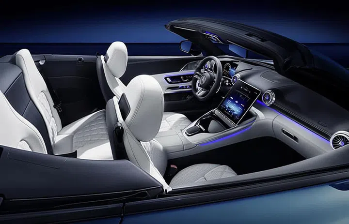 The new Mercedes-AMG SL roadster will once again be a 2+2 seater (the first time since 1989), with the second row able to accommodate passengers up to 1.5m tall.