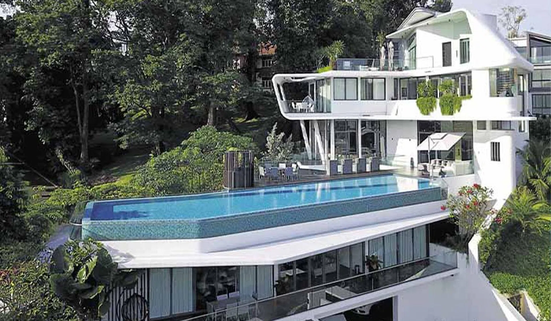 When the architect struck out on his own in 1994, the first house he designed was for his father’s boss. The bungalow at Telok Kurau has an upside down curved concrete roof to collect rainwater for the gardens. It seems nutty, but Mr Taher was of the opinion that if he designed a slide that could curve around the house, his client could wake up in the morning, slide down from his bedroom on the second floor right into the pool on the first. ”It’s such a great way to wake up, don’t you think,” he says with a straight face.