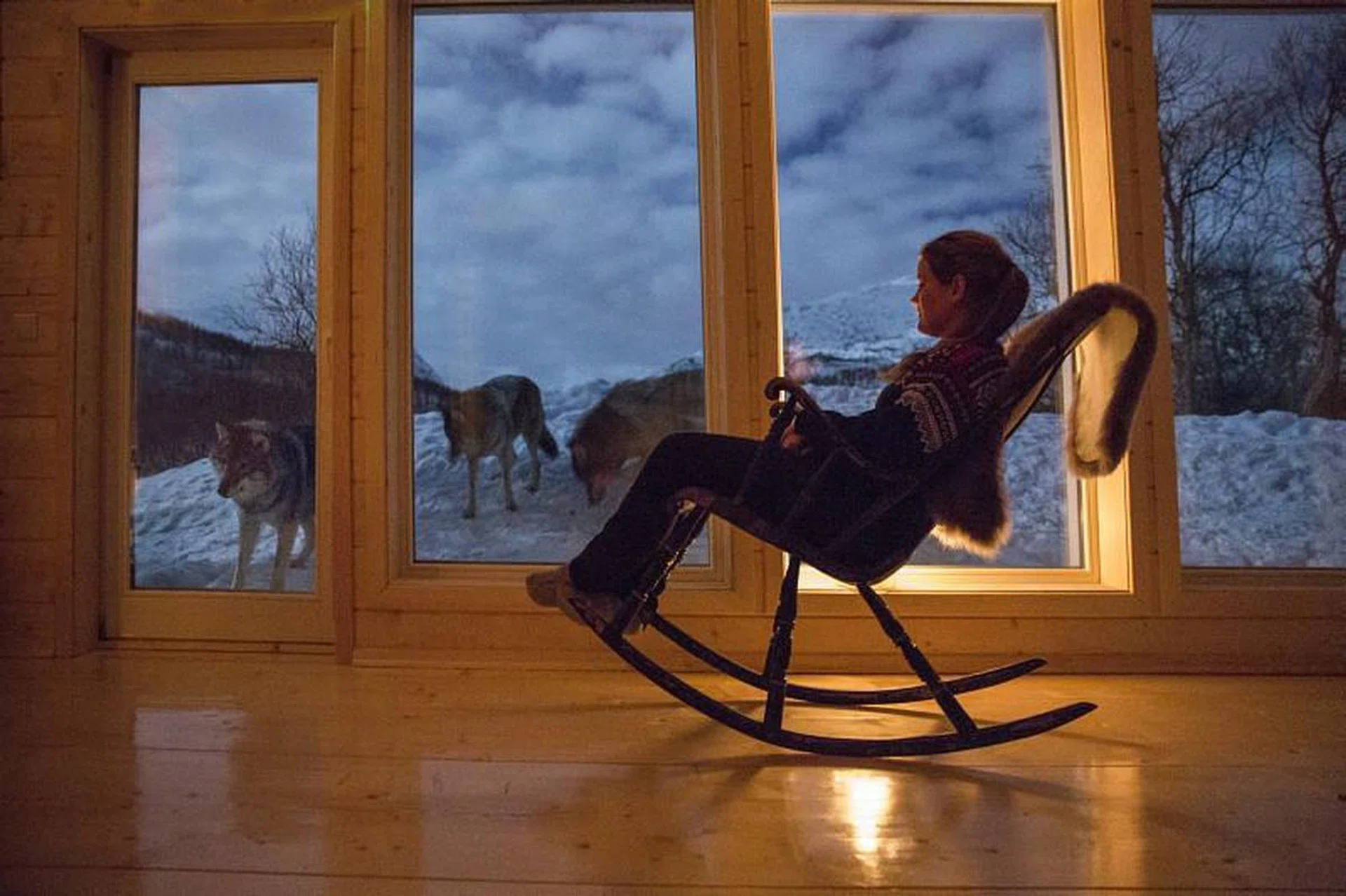 In a world first, Polar Park in Northern Norway has opened a new lodge inside one of its huge enclosures, which is also home to a pack of Arctic wolves. Besides spending an evening in the lodge with wolves freely roaming on the other side of the windows, guests get to meet the animals face-to-face.